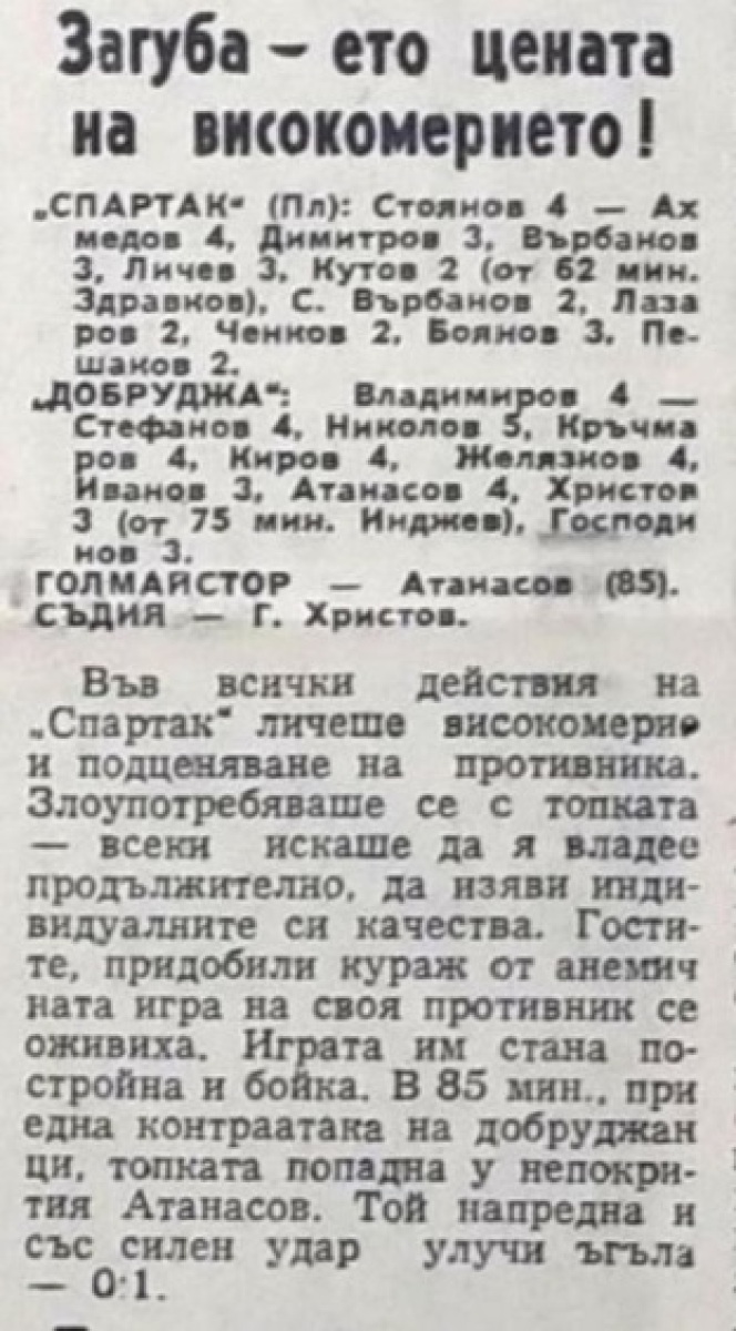 «Спартак» Плевен - «Добруджа» Толбухин - 0:1