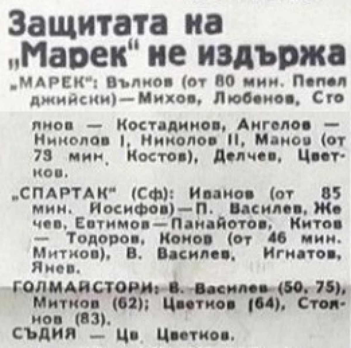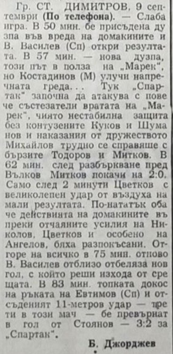 «Марек» Станке-Димитров - «Спартак» София - 2:3