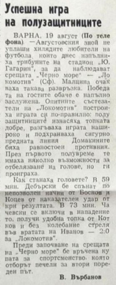«Черно море» Варна - «Локомотив» София - 0:2