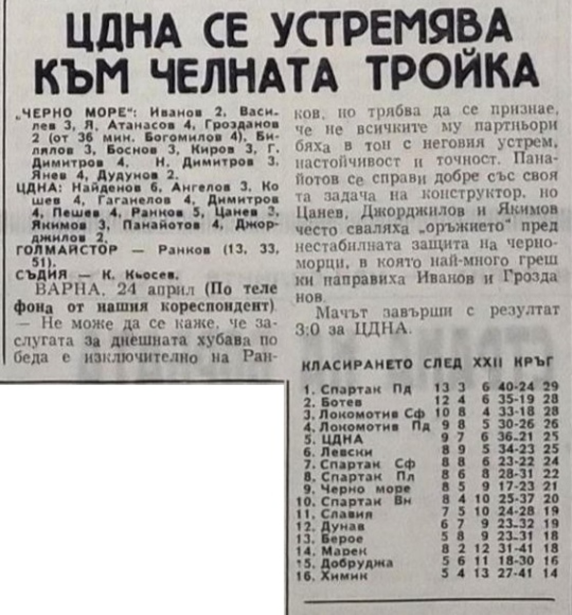 «Черно море» Варна - ЦДНА София - 0:3