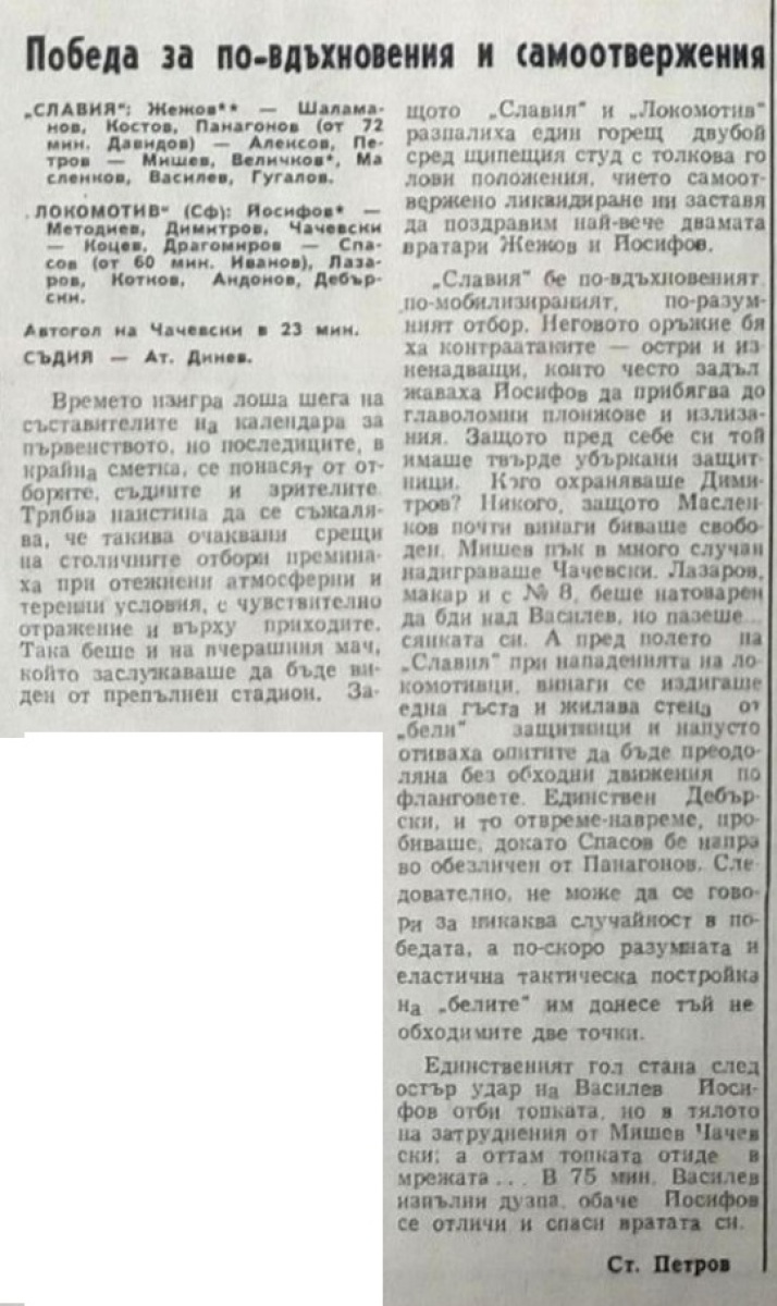 Перед матчем Наум Савов из Локомотив София (1955 - 62) обьявил об окончании карьеры футболиста.