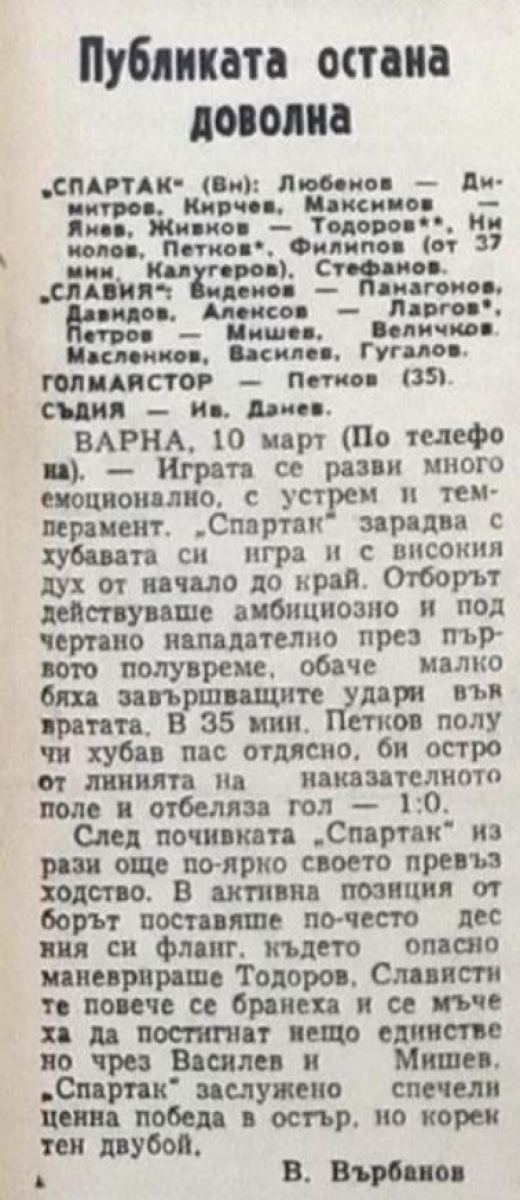 «Спартак» Варна - «Славия» София - 1:0