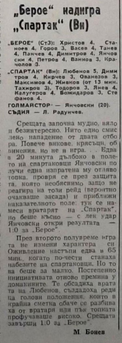 «Берое» Стара-Загора - «Спартак» Варна - 1:0