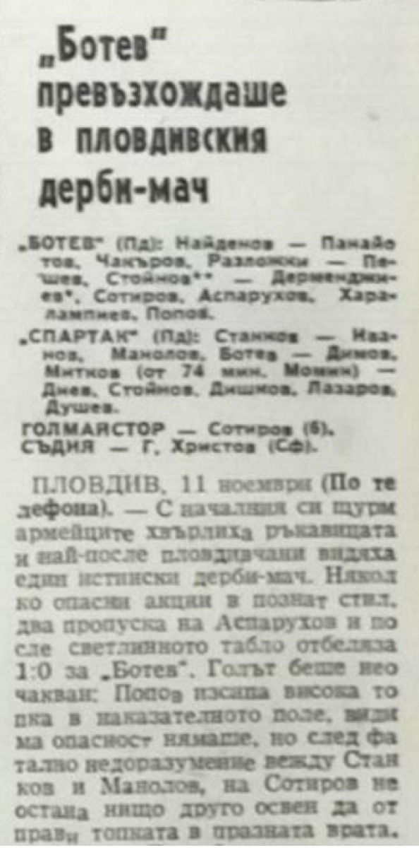 «Ботев» Пловдив - «Спартак» Пловдив - 1:0