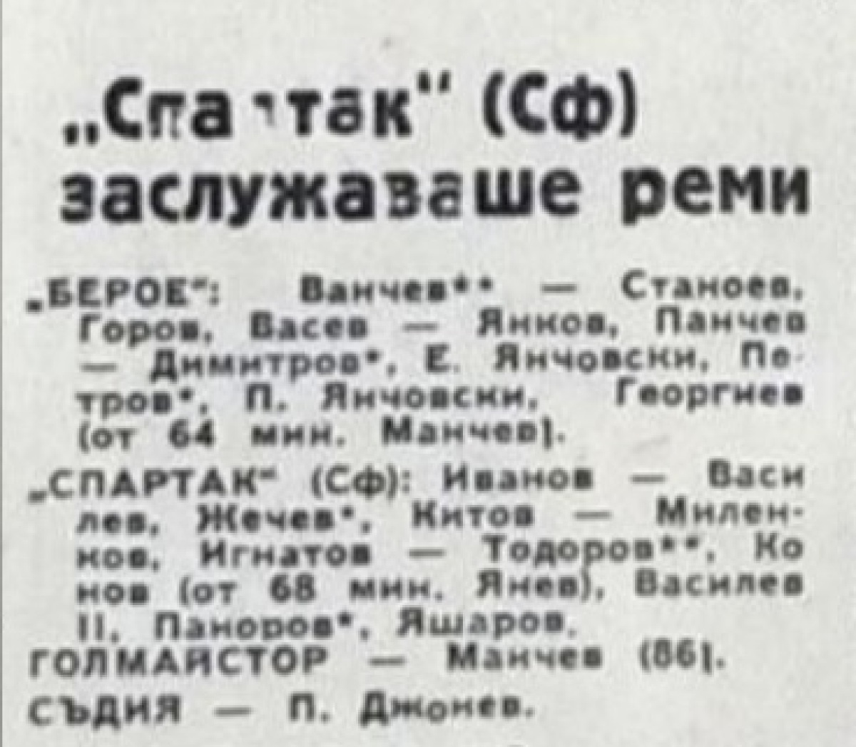 «Берое» Стара-Загора - «Спартак» София - 1:0