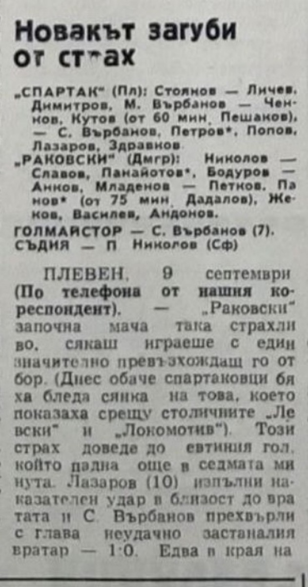 «Спартак» Плевен - «Раковски» Димитровград - 1:0