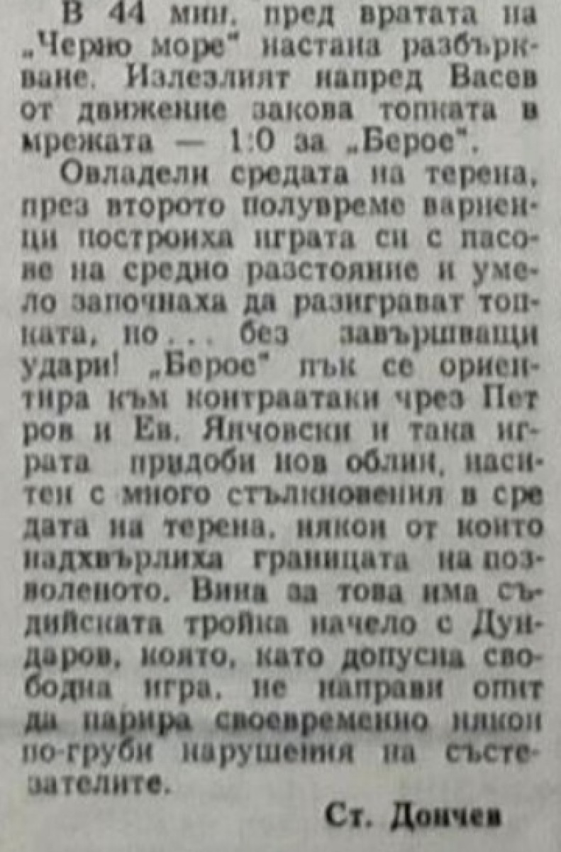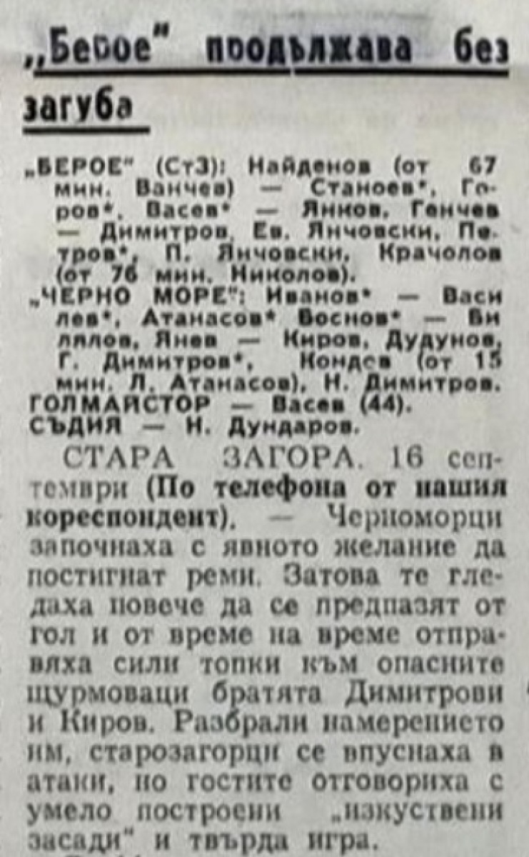 «Берое» Стара-Загора - «Черно море» Варна - 1:0