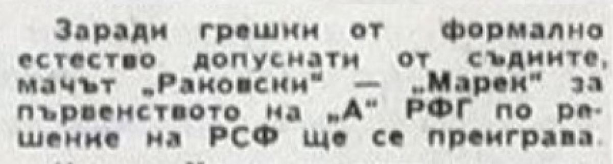 Матч сыгранный 19 августа (Раковски Димитровград - Марек - 1:0) был переигран 29 сентября 1962 из за многочисленных ошибок судейской бригады (были отменены три гола гостей из Станке Димитрова).