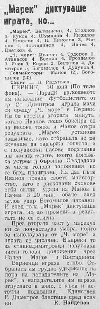 «Марек» Станке-Димитров - «Черно море» Варна - 1:1