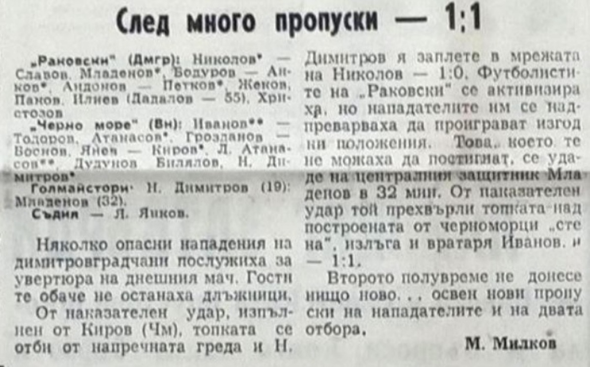 «Раковски» Димитровград - «Черно море» Варна - 1:1