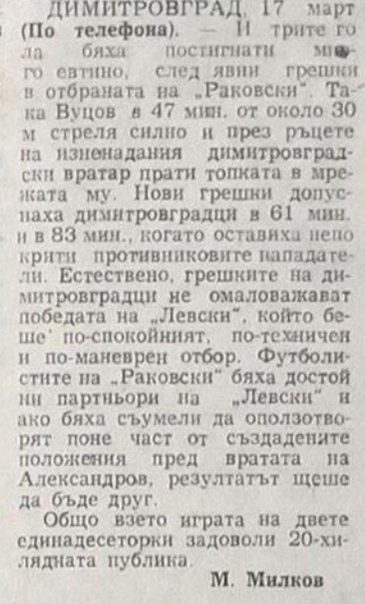 «Раковски» Димитровград - «Левски» София - 0:3