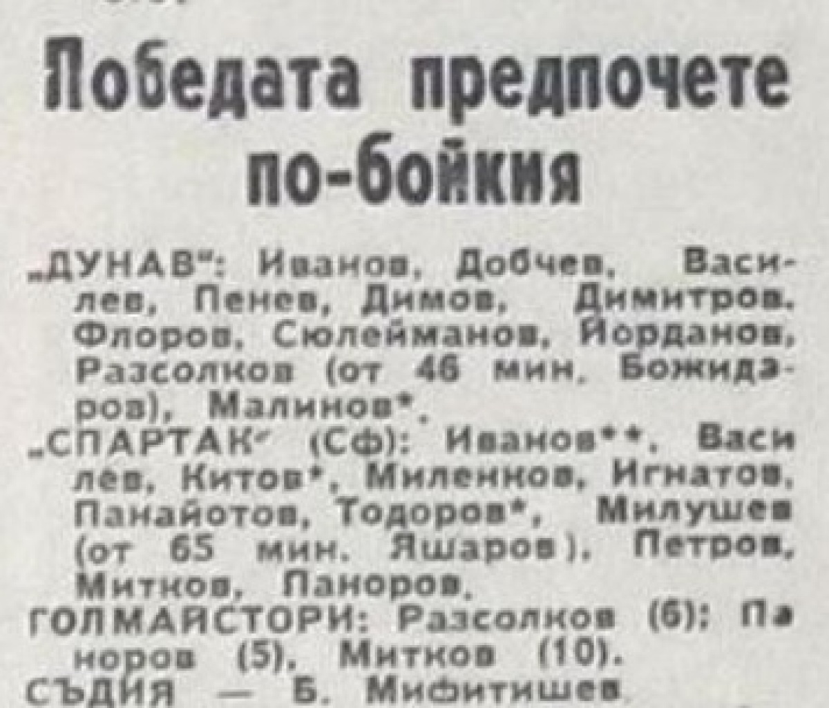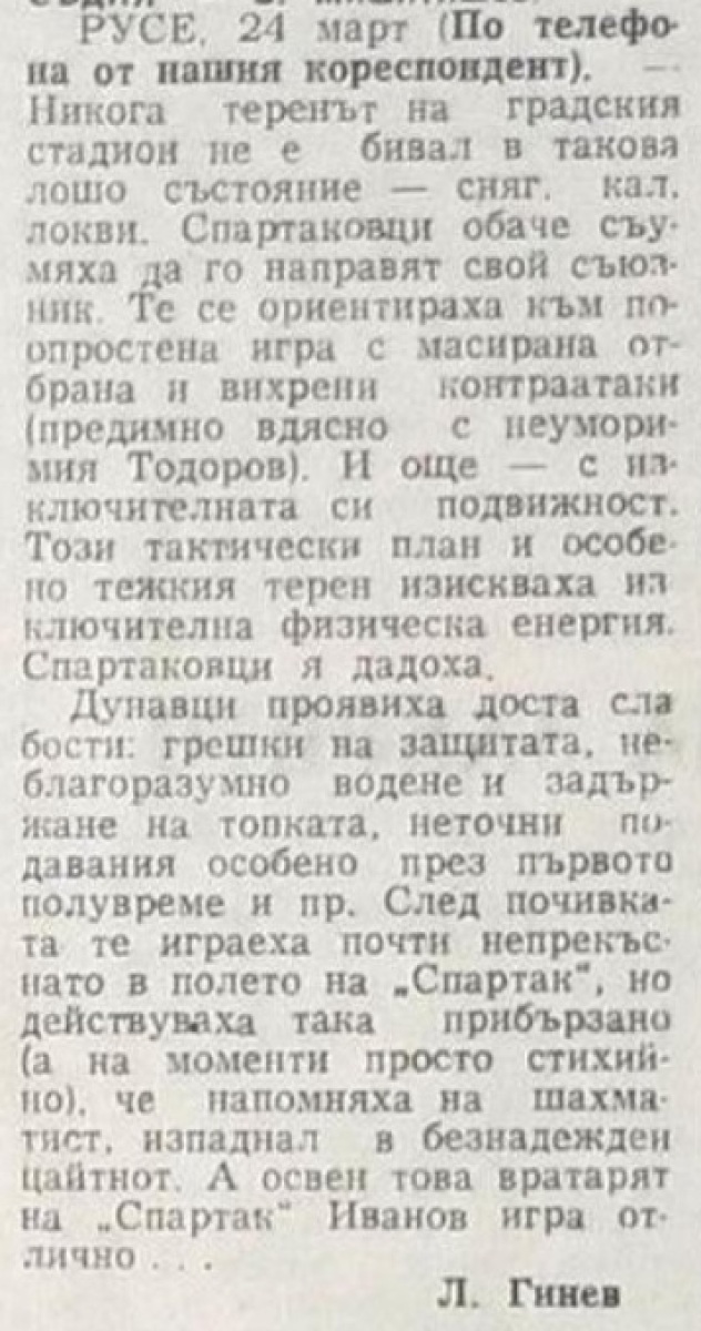 «Дунав» Русе - «Спартак» София - 1:2