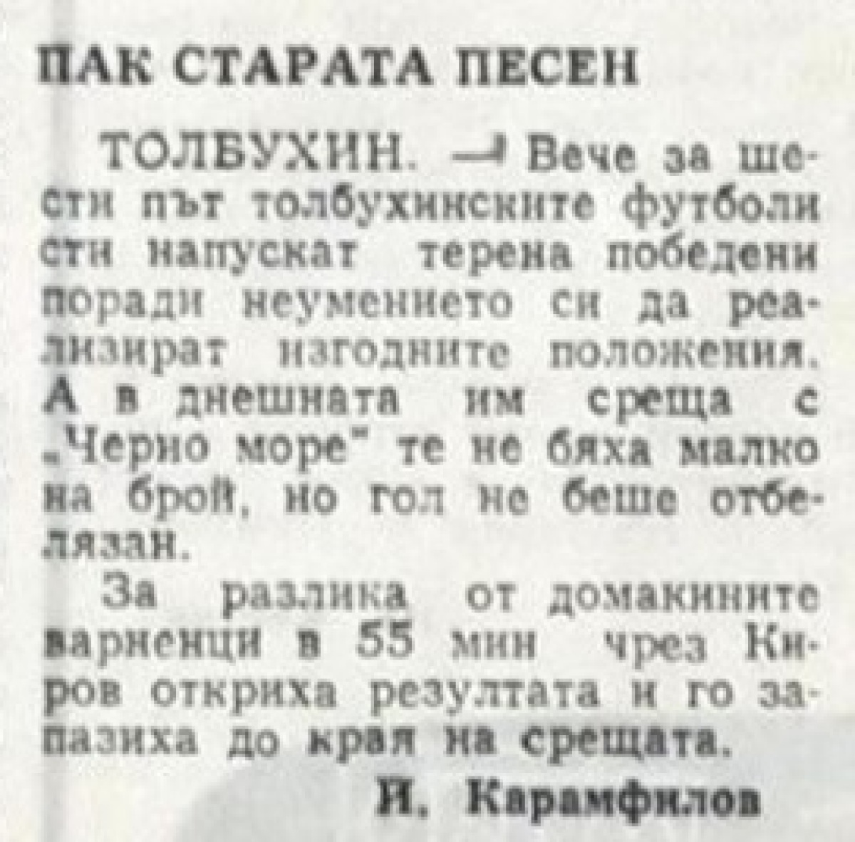 «Добруджа» Толбухин - «Черно море» Варна - 0:1