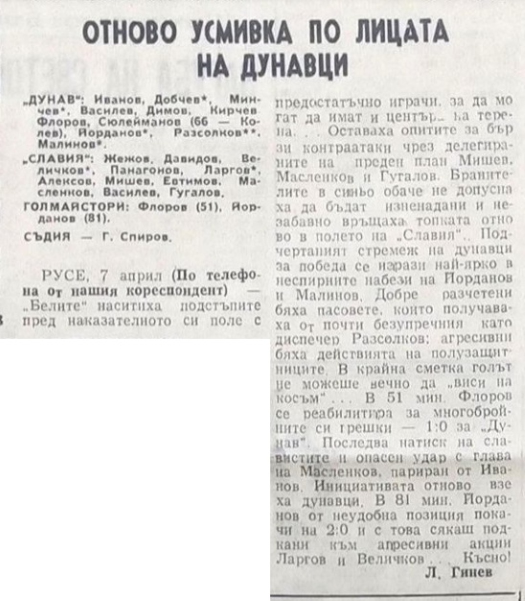 «Дунав» Русе - «Славия» София - 2:0