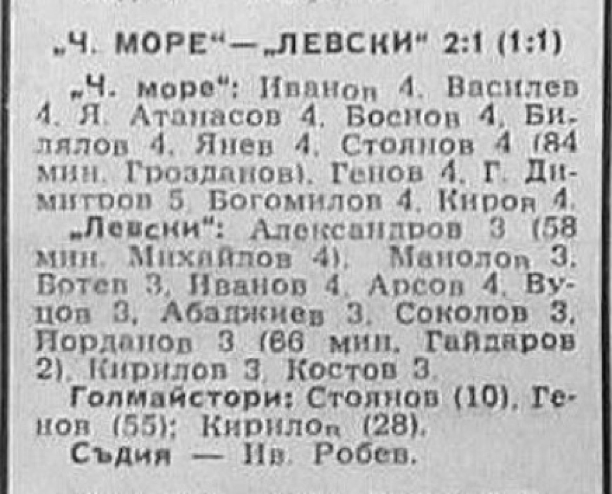 «Черно море» Варна - «Левски» София - 2:1