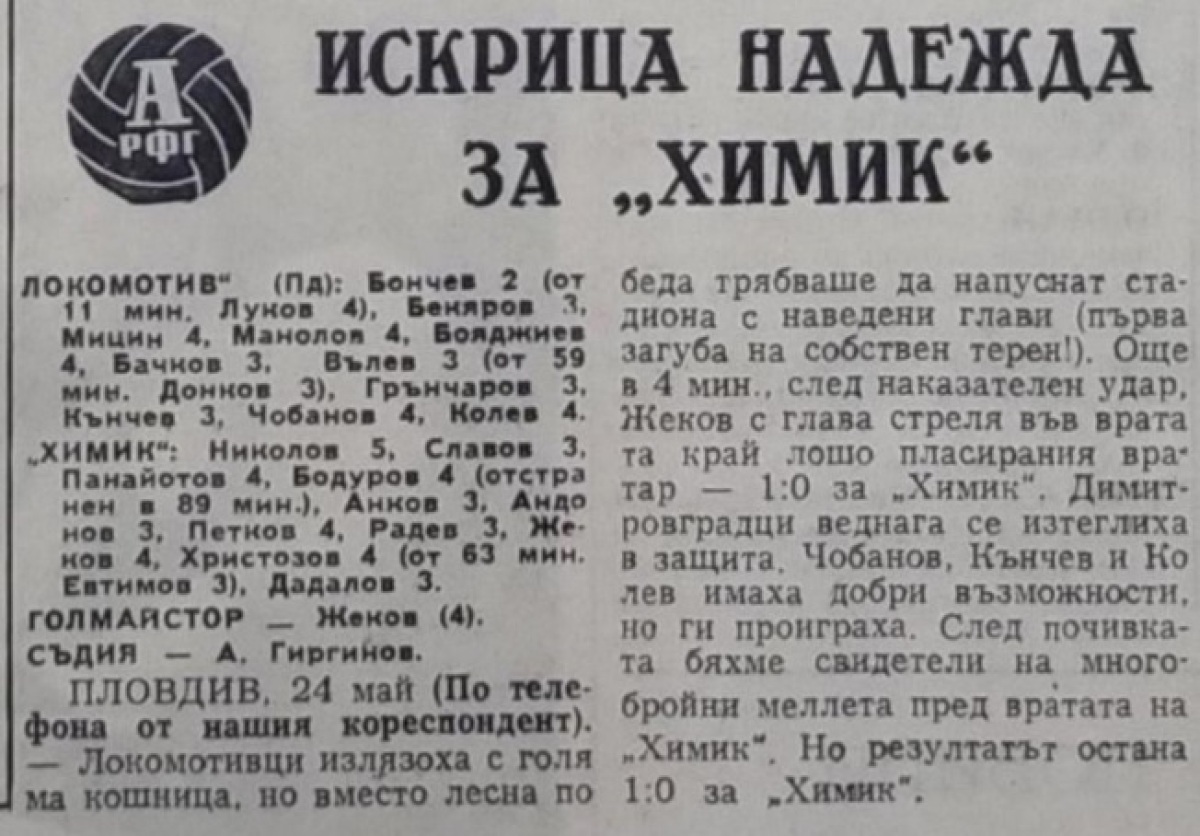 «Локомотив» Пловдив - «Химик» Димитровград - 0:1