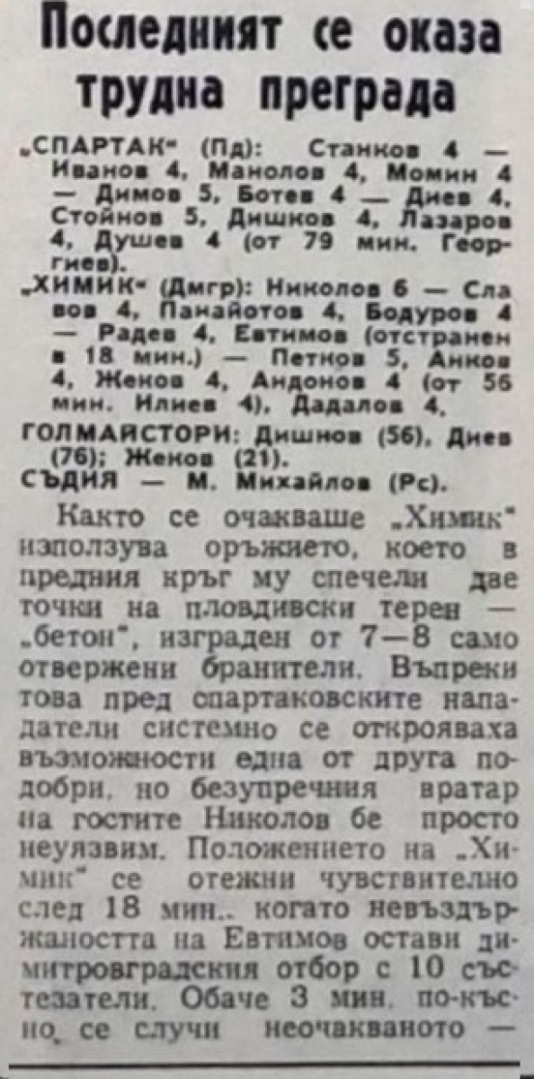«Спартак» Пловдив - «Химик» Димитровград - 2:1