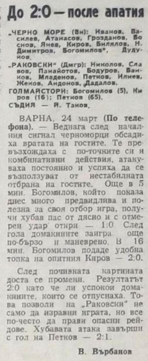 «Черно море» Варна - «Раковски» Димитровград - 2:1
