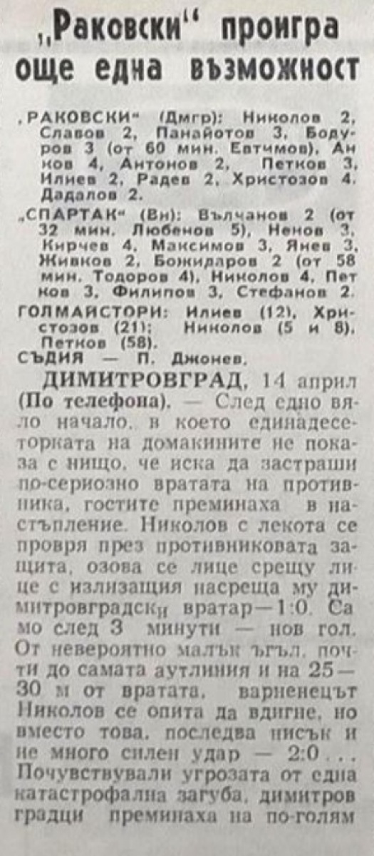 «Раковски» Димитровград - «Спартак» Варна - 2:3