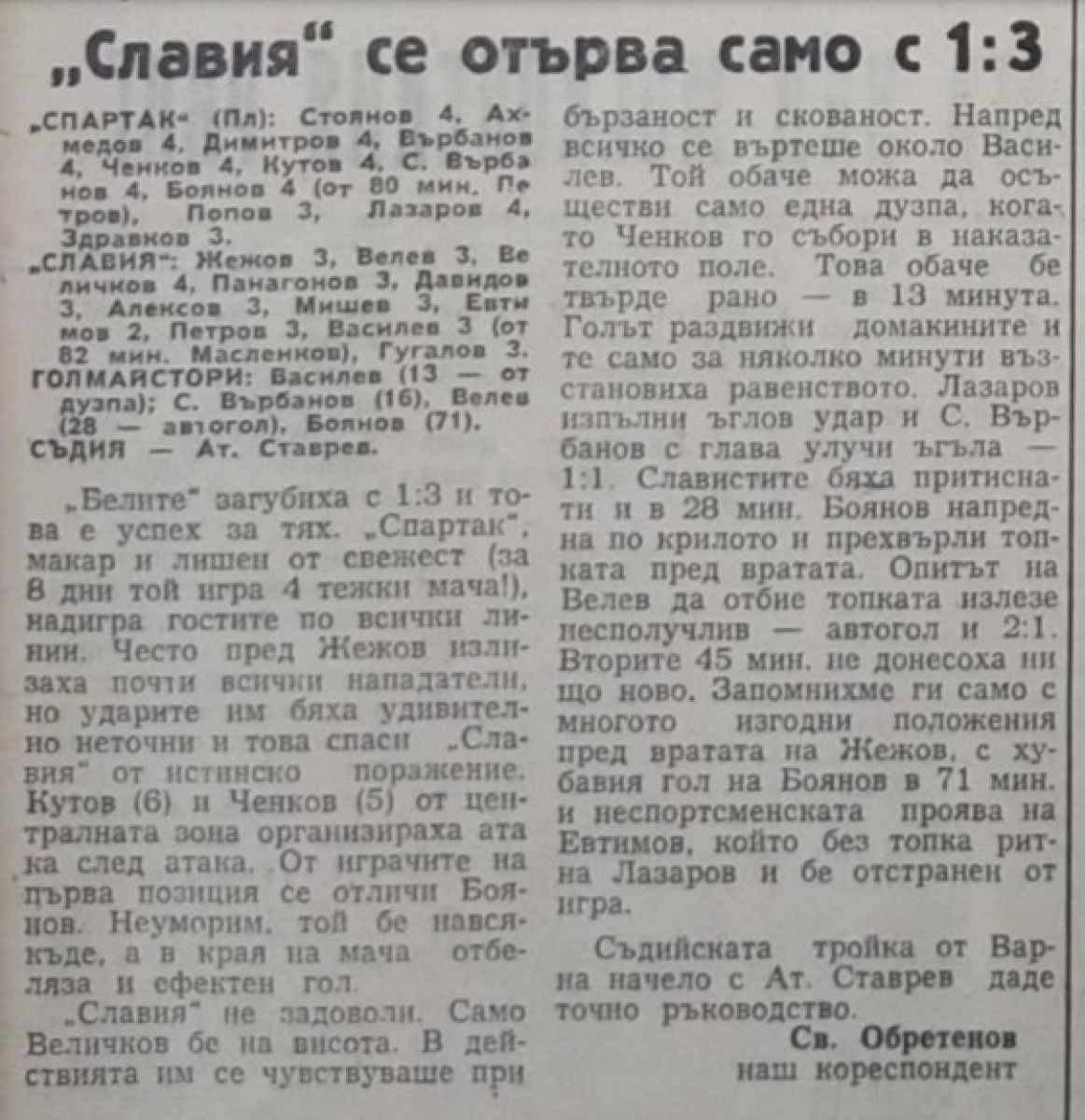 «Спартак» Плевен - «Славия» София - 3:1