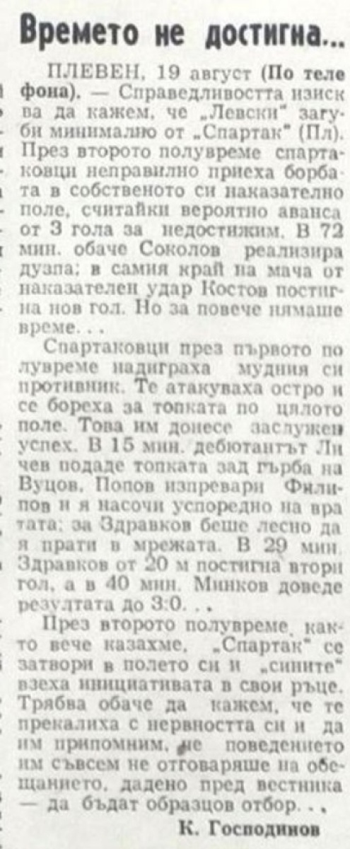 «Спартак» Плевен - «Левски» София - 3:2