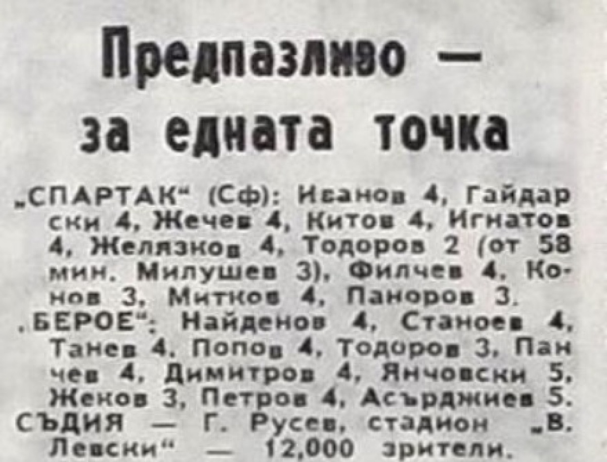 «Спартак» София - «Берое» Стара-Загора - 0:0