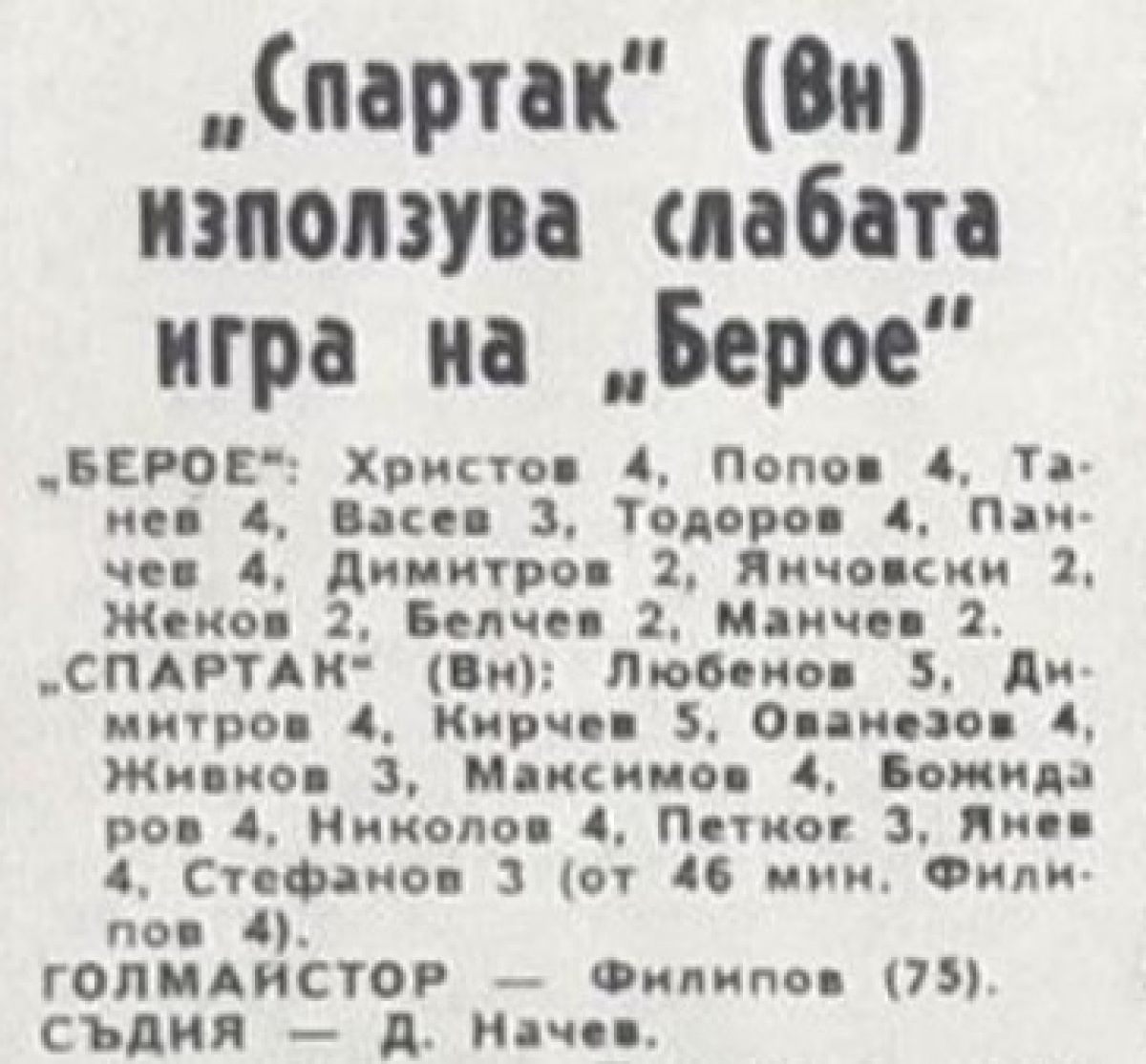 «Берое» Стара-Загора - «Спартак» Варна - 0:1