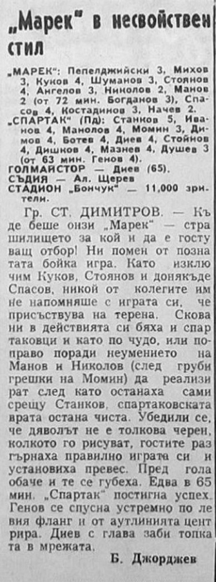 «Марек» Станке-Димитров - «Спартак» Пловдив - 0:1