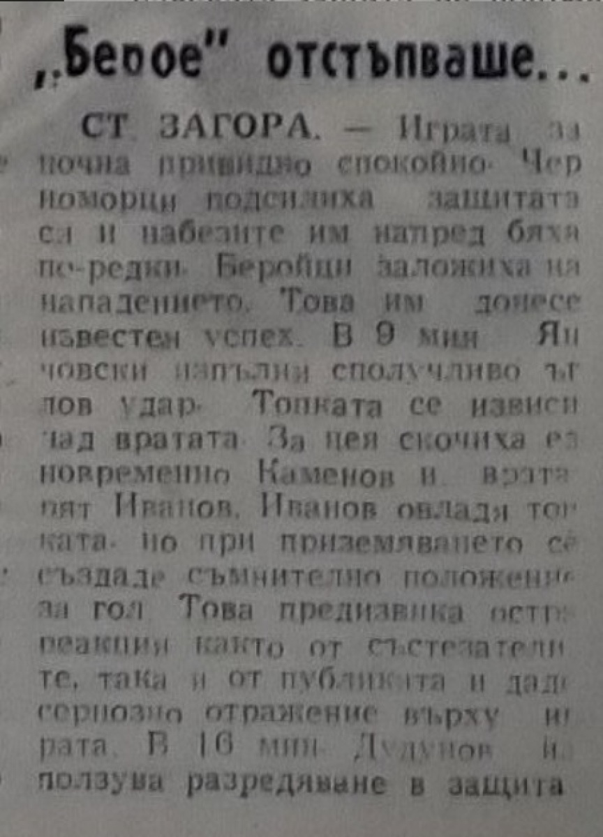 «Берое» Стара-Загора - «Черно море» Варна - 0:1