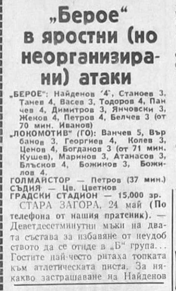 «Берое» Стара-Загора - «Локомотив» Горна-Оряховица - 1:0
