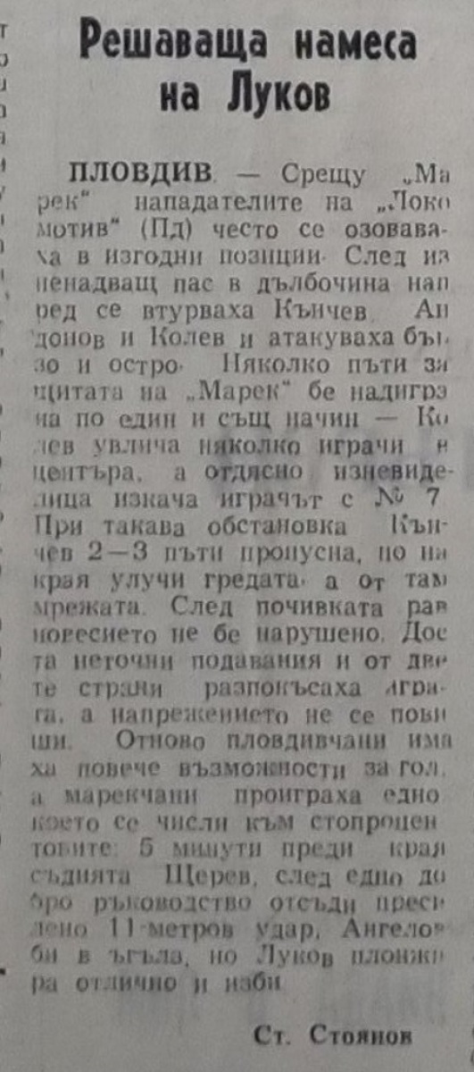 «Локомотив» Пловдив - «Марек» Станке-Димитров - 1:0