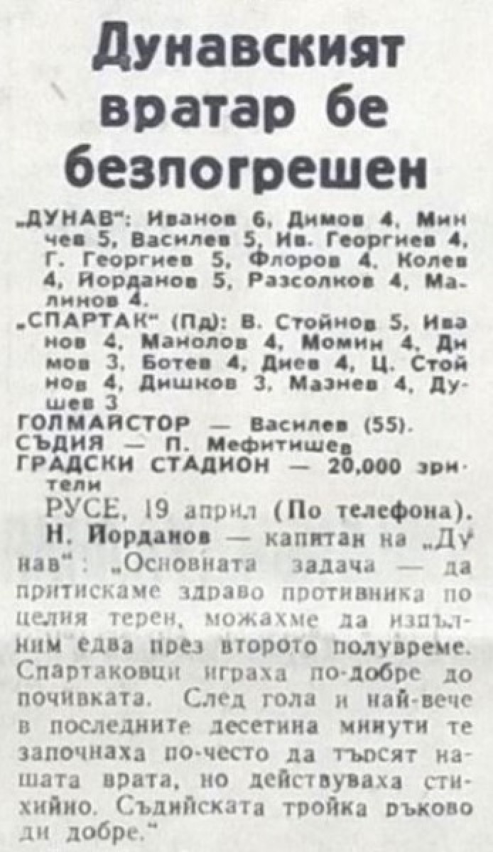 «Дунав» Русе - «Спартак» Пловдив - 1:0