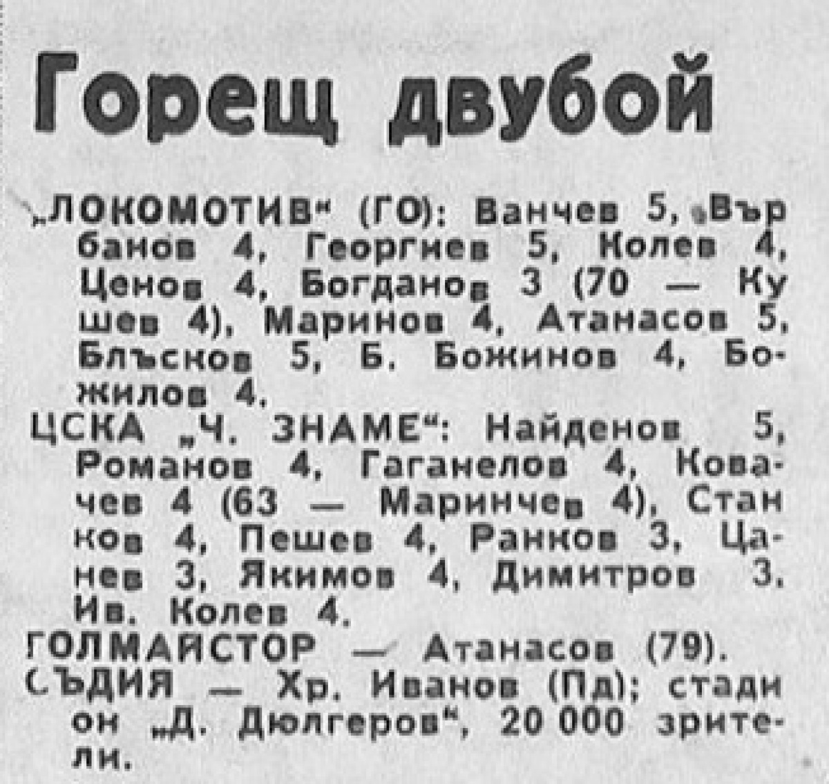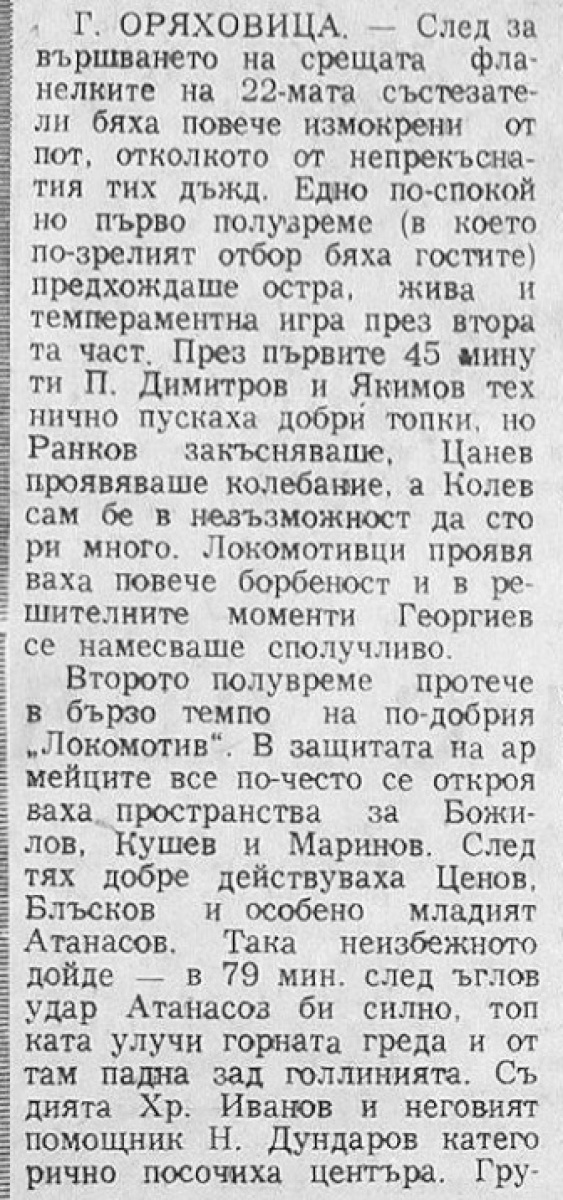 «Локомотив» Горна-Оряховица - «ЦСКА Червено Знаме» София - 1:0