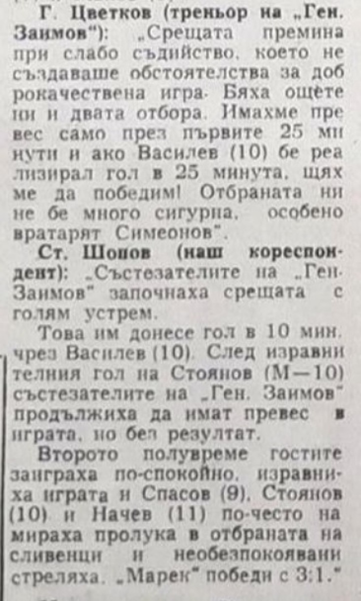 «Генерал Заимов» Сливен - «Марек» Станке-Димитров - 1:3