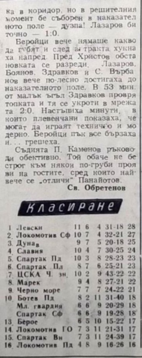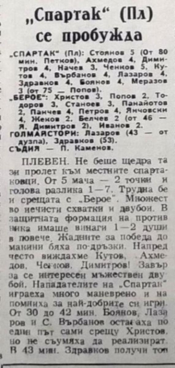 «Спартак» Плевен - «Берое» Стара-Загора - 2:0