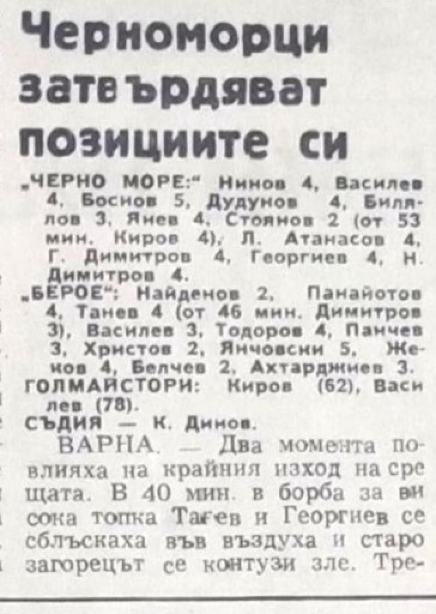 «Черно море» Варна - «Берое» Стара-Загора - 2:0