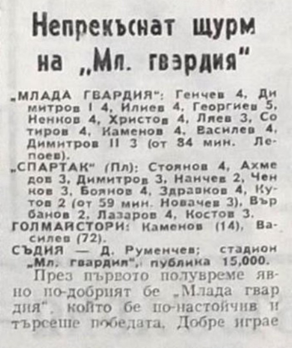 «Млада гвардия» - «Спартак» Плевен - 2:0
