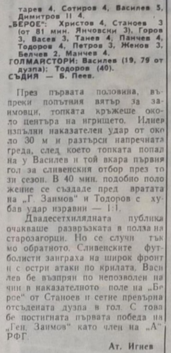 «Генерал Заимов» Сливен - «Берое» Стара-Загора - 2:1
