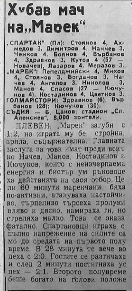 «Спартак» Плевен - «Марек» Станке-Димитров - 2:1