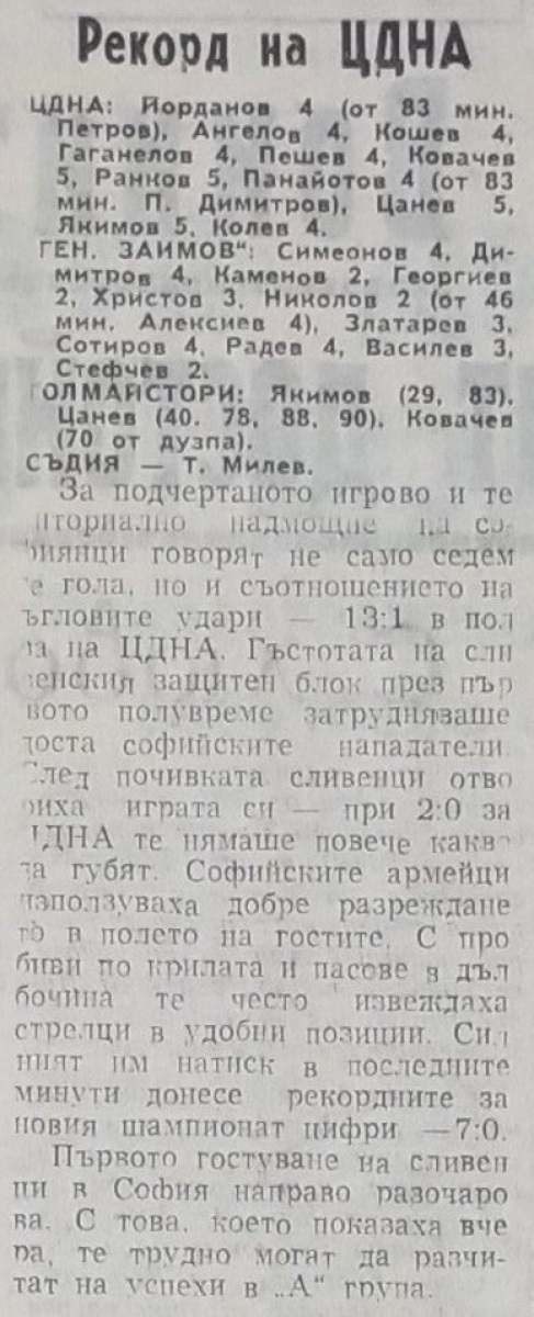 ЦДНА София - «Генерал Заимов» Сливен - 7:0