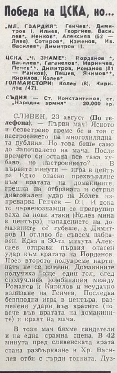 «Млада гвардия» - «ЦСКА Червено Знаме» София - 0:2