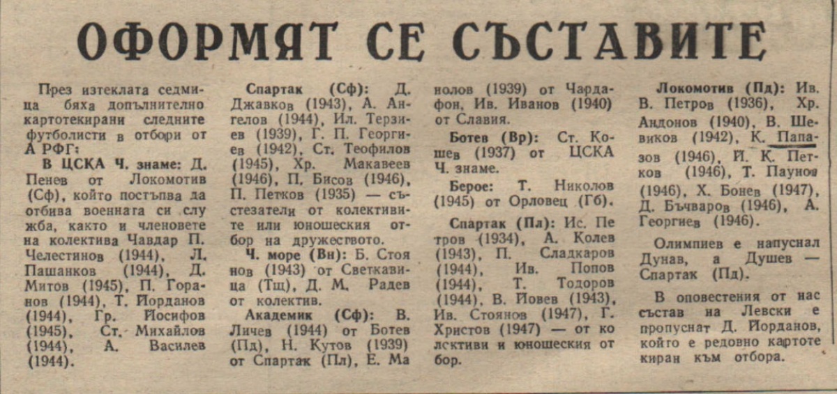 Чемпионат Болгарии 1964/65. Группа А