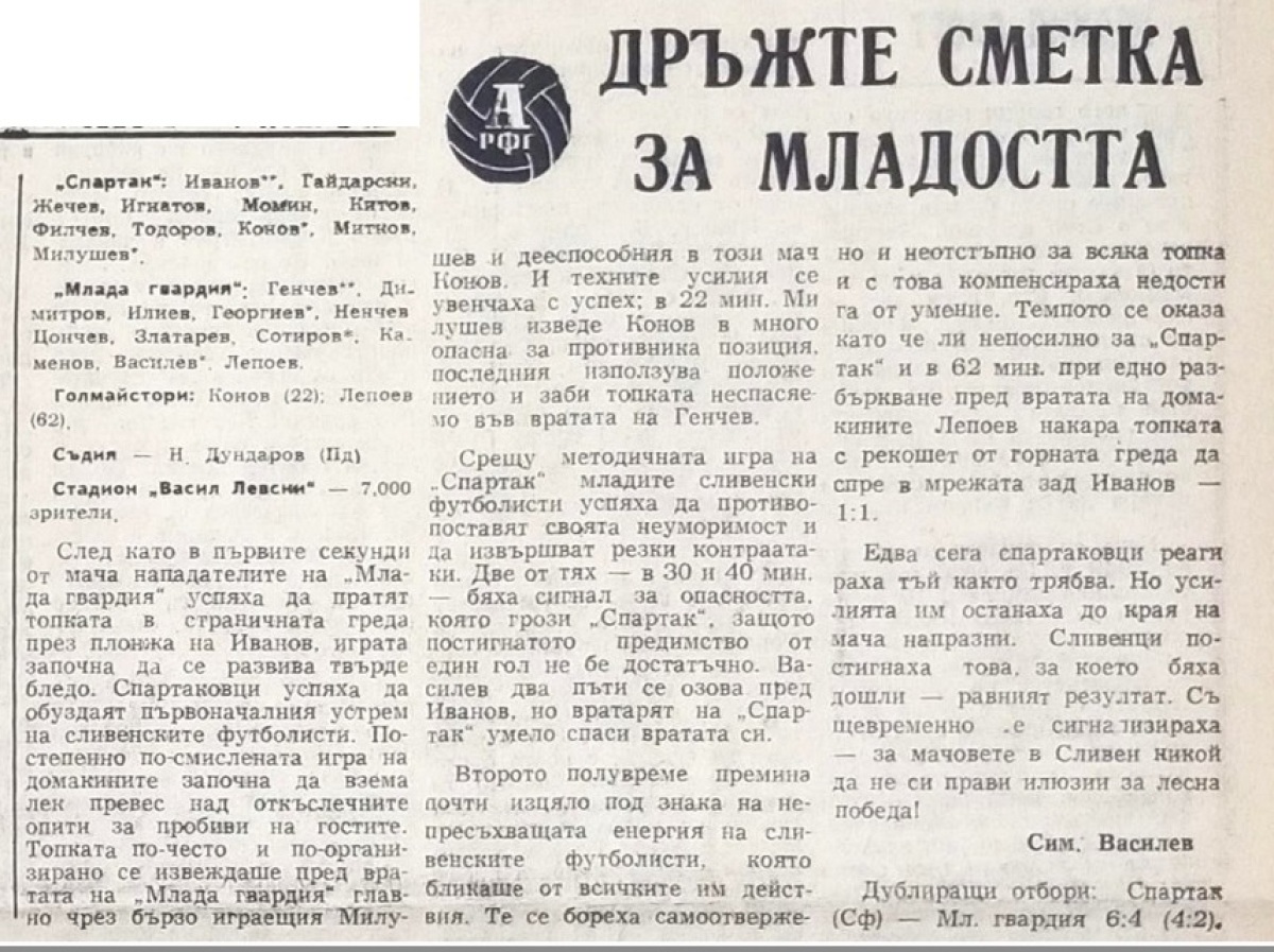 «Спартак» София - «Млада гвардия» - 1:1