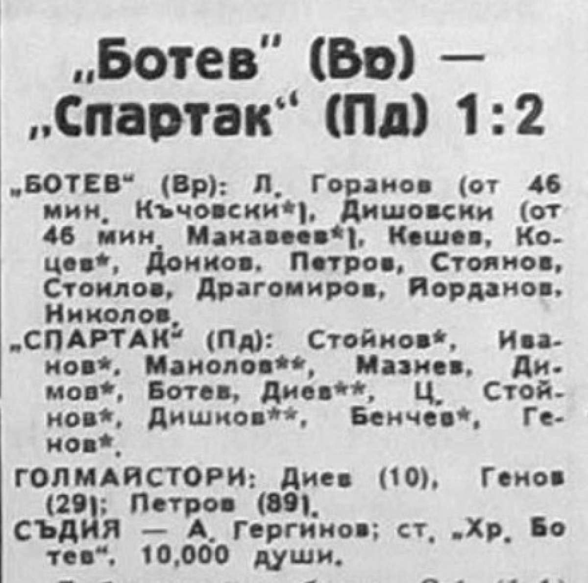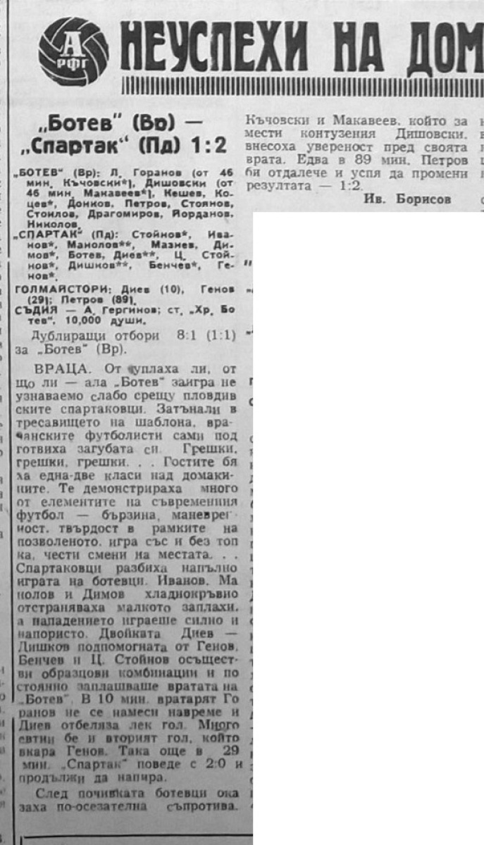 «Ботев» Враца - «Спартак» Пловдив - 1:2