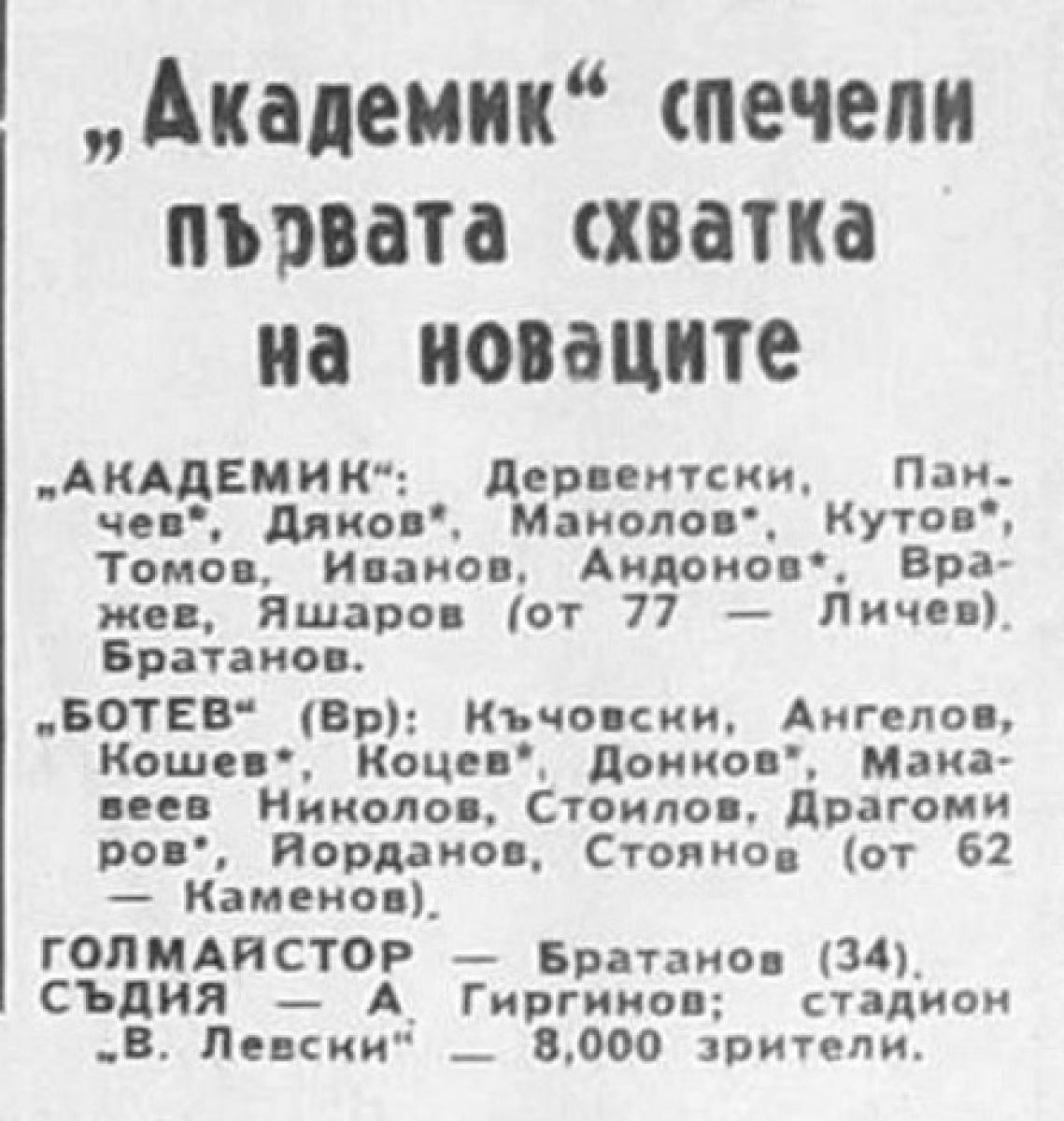 «Академик» София - «Ботев» Враца - 1:0
