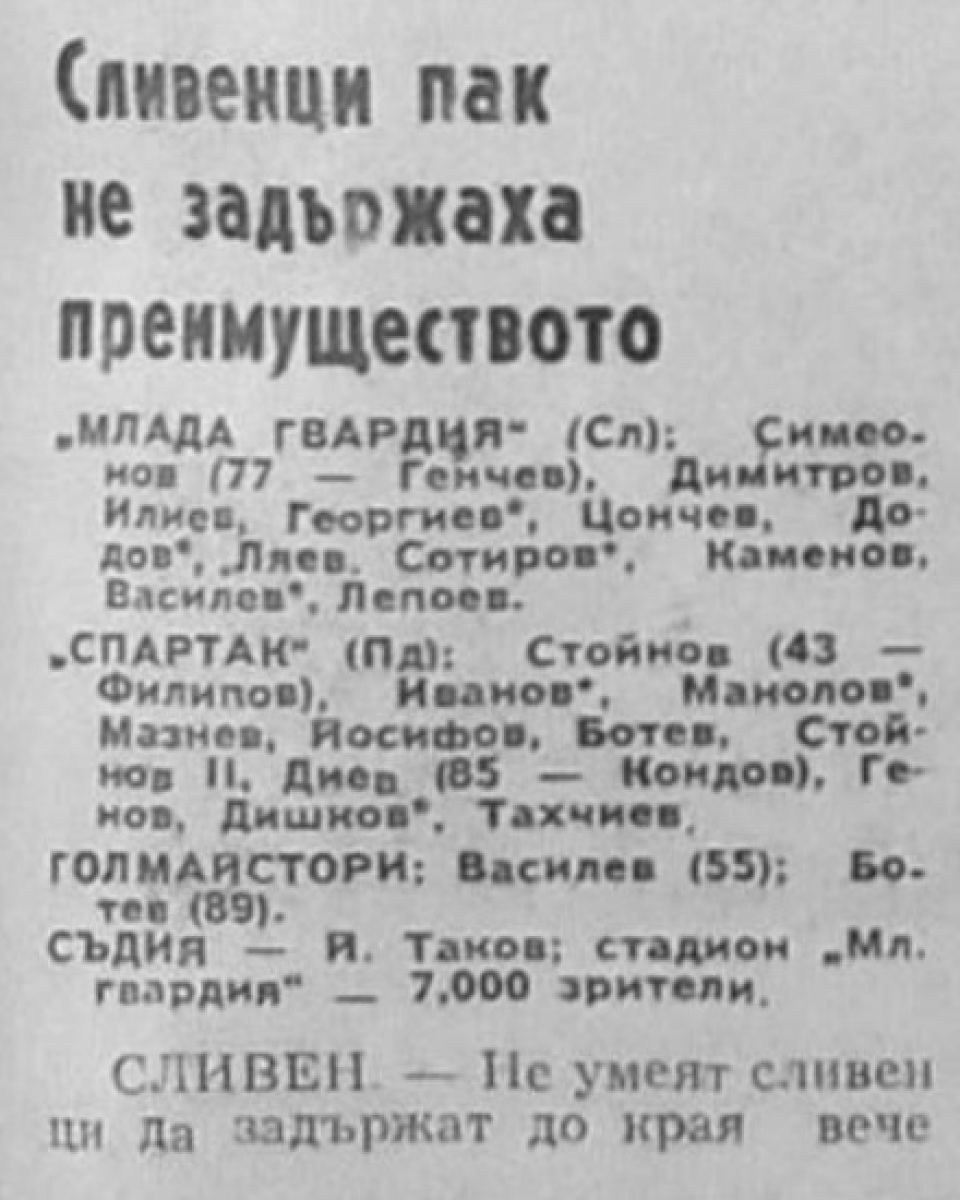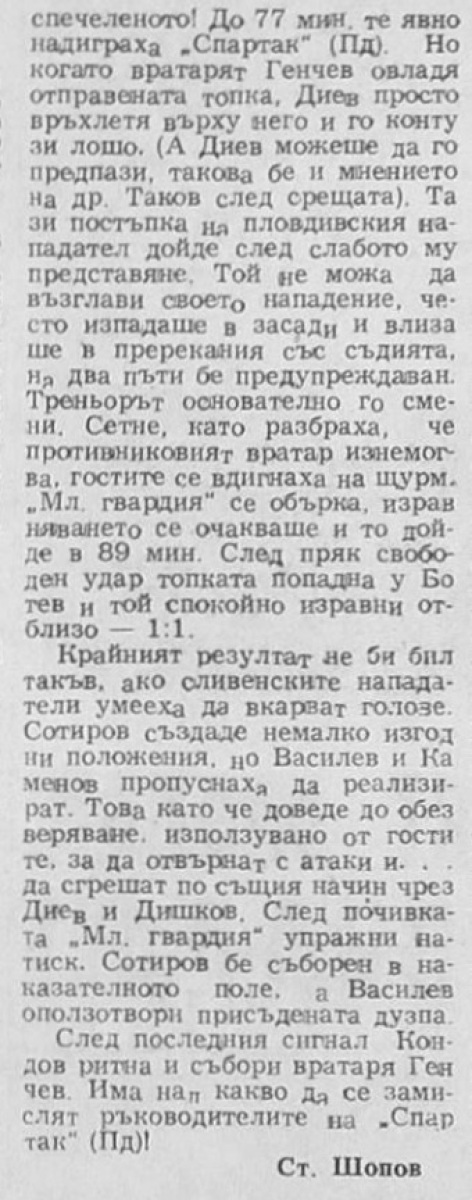 «Млада гвардия» - «Спартак» Пловдив - 1:1