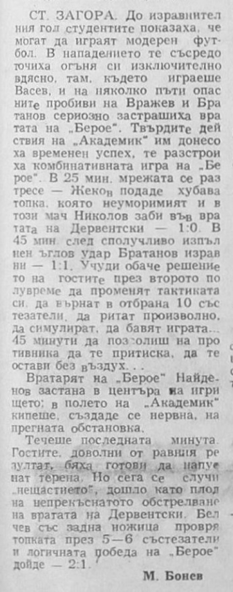 «Берое» Стара-Загора - «Академик» София - 2:1