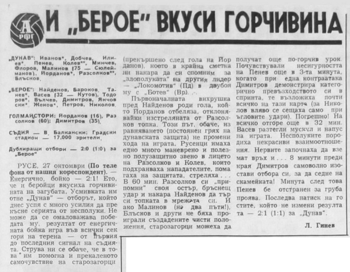 «Дунав» Русе - «Берое» Стара-Загора - 2:1