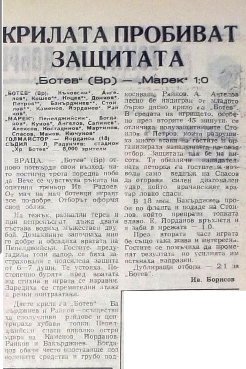 «Ботев» Враца - «Марек» Станке-Димитров - 1:0