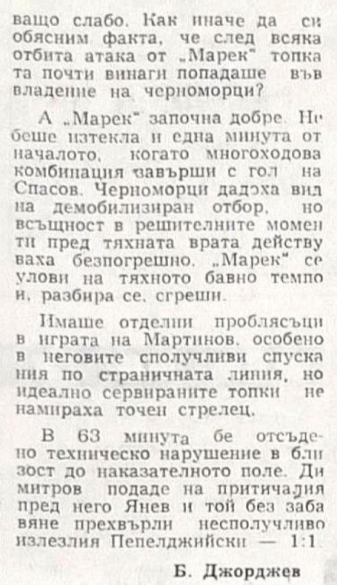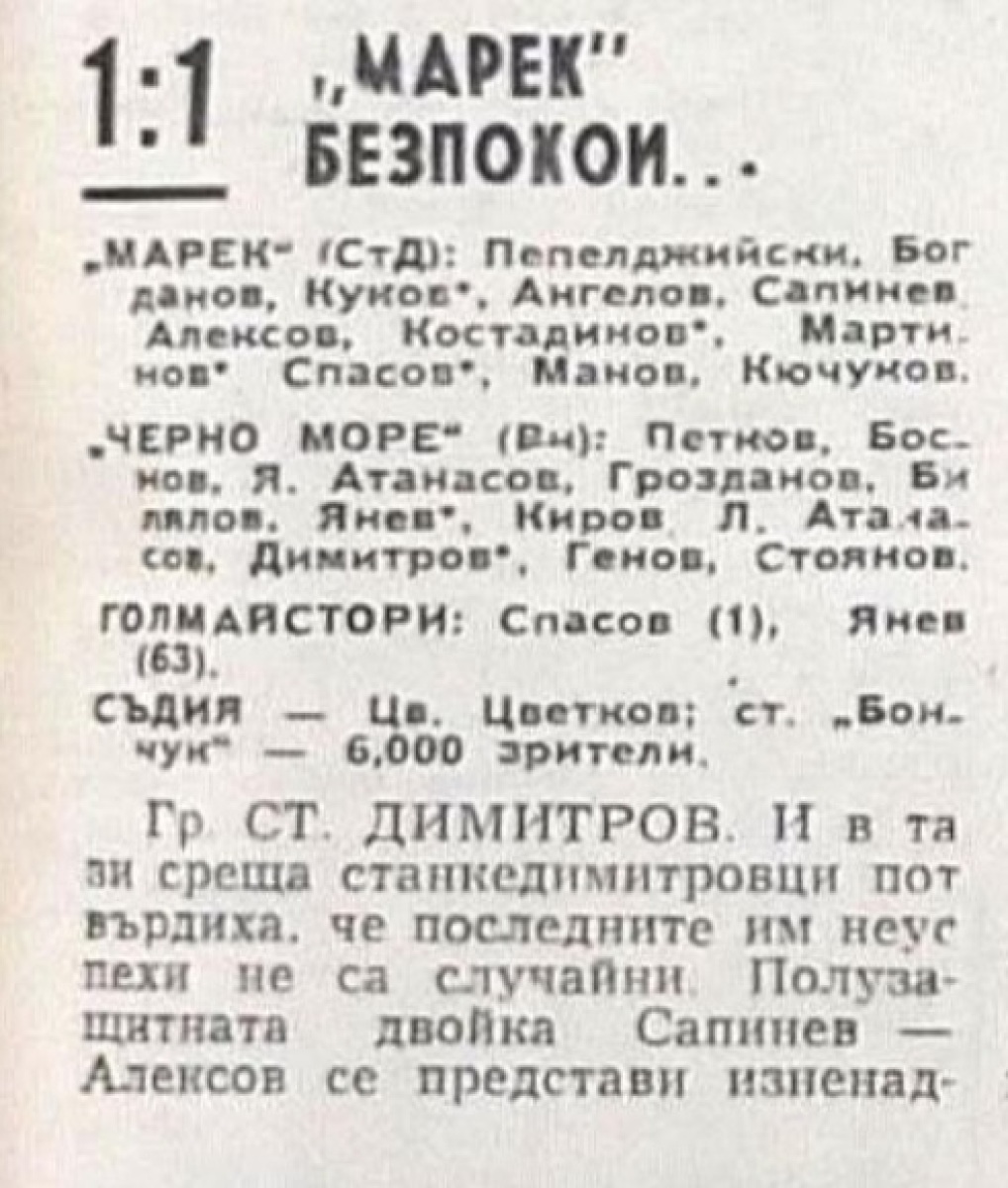 «Марек» Станке-Димитров - «Черно море» Варна - 1:1